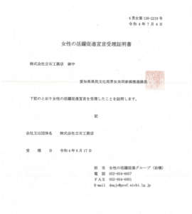 「女性の活躍推進宣言受理証明書」の資格を取りました。
